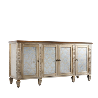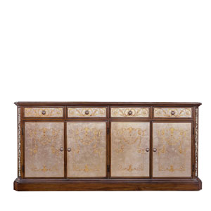 * 手工雕刻的工藝細節結實的連接技術18道以上的多步驟油漆工藝; * 門內有四塊玻璃層板,背板處裝有背鏡,使內部的光線更通亮;