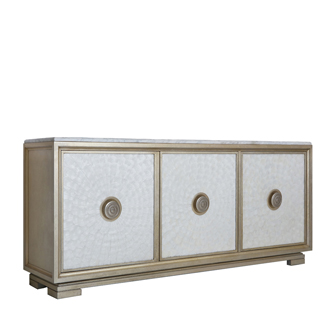 * 以現位于美國白宮中象征友誼和權力的堅毅桌(英語:Resolute desk)為設計意念, 以實木拼貼和雕刻工藝,將具有紀念意義的歷史時刻融入其中,實用性的功能設計更是把藝術和生活完美結合, 是宮廷系列華盛頓美式餐桌的特色。