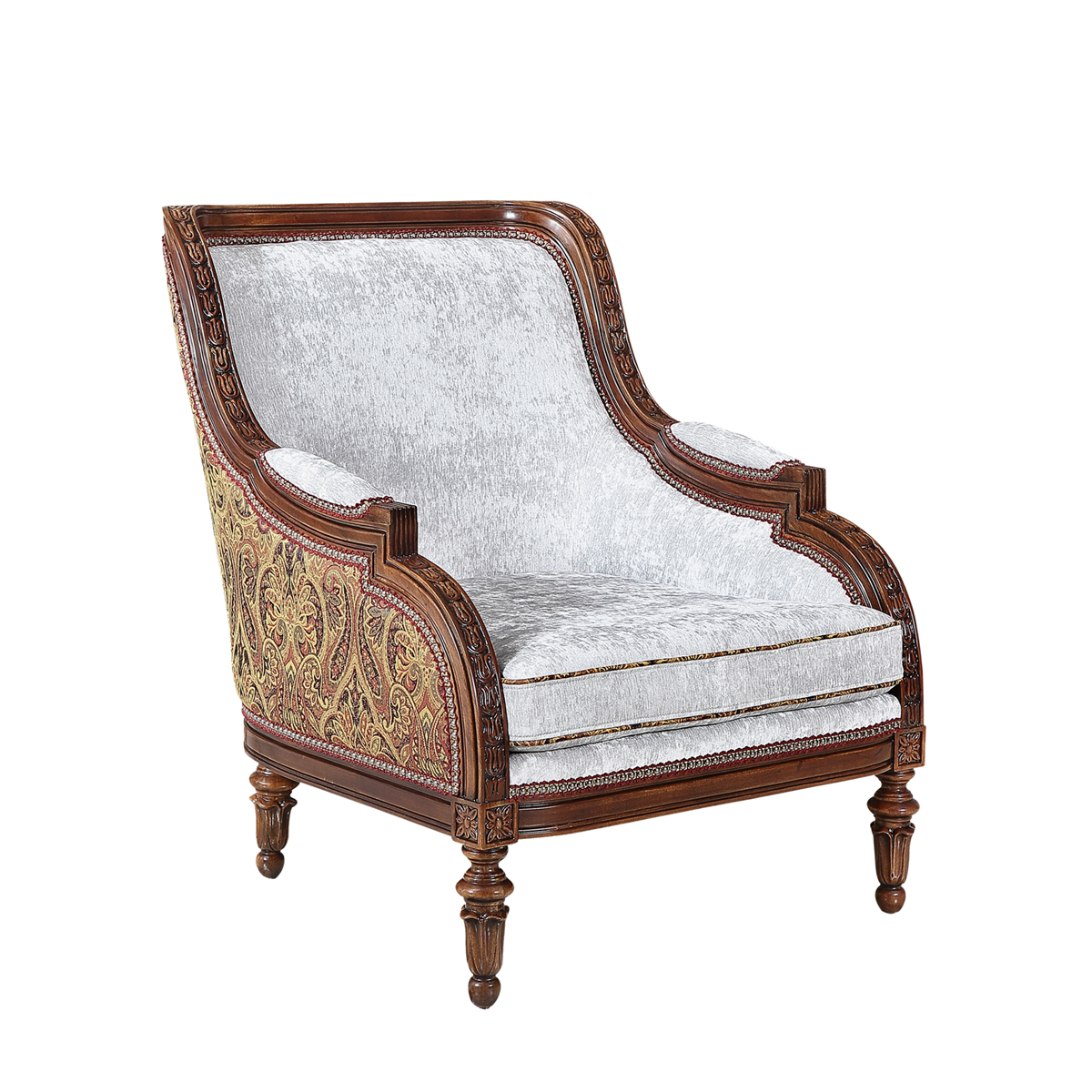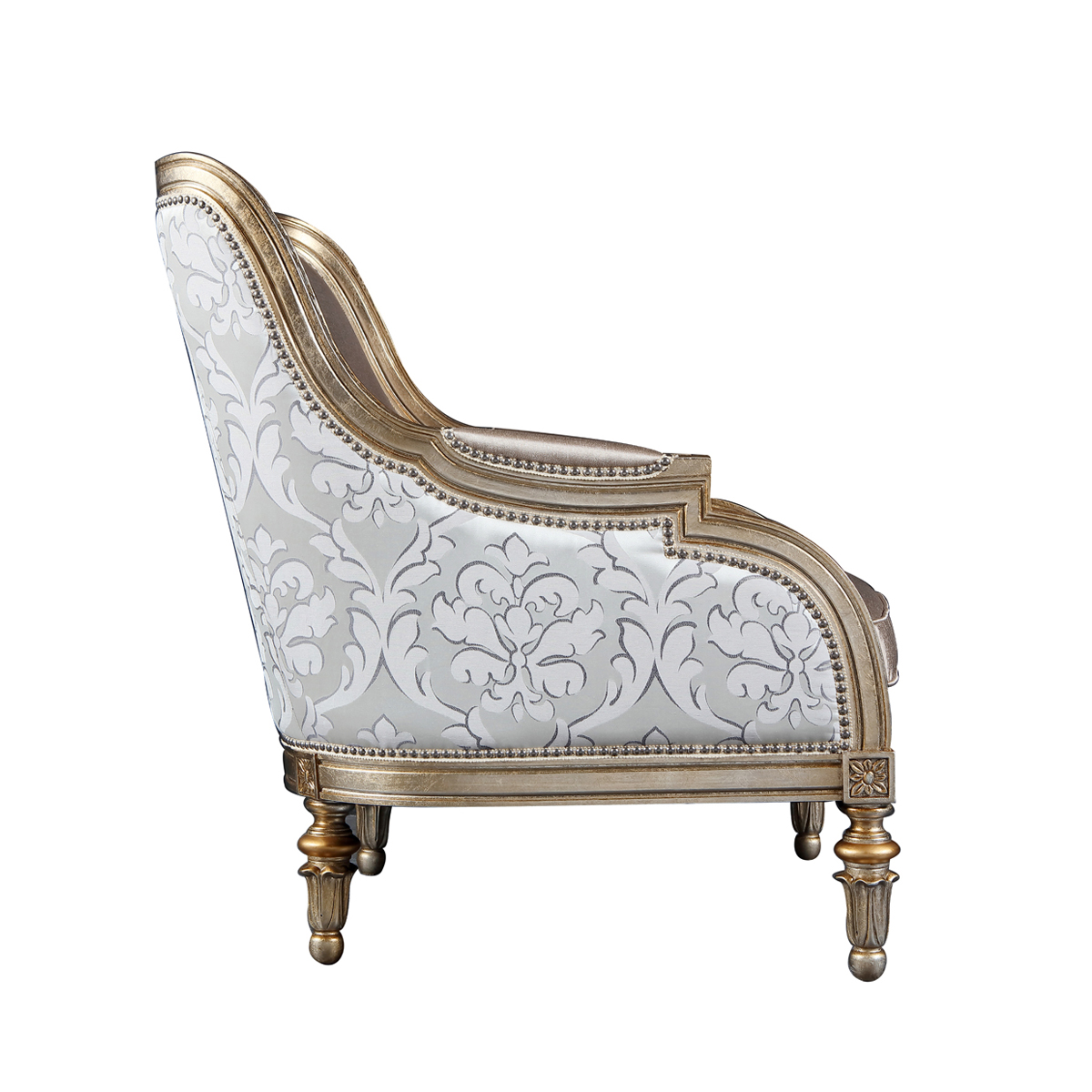 復(fù)古而有時尚感的香檳金涂裝,喚醒輕奢時尚;井然有序的雕刻,栩栩如生的花紋裝飾,使它不論從任何角度欣賞,都愈加美不勝收。含苞待放的鈴蘭花雕刻椅腳增添知性的魅力,綻放氣質(zhì)光彩。