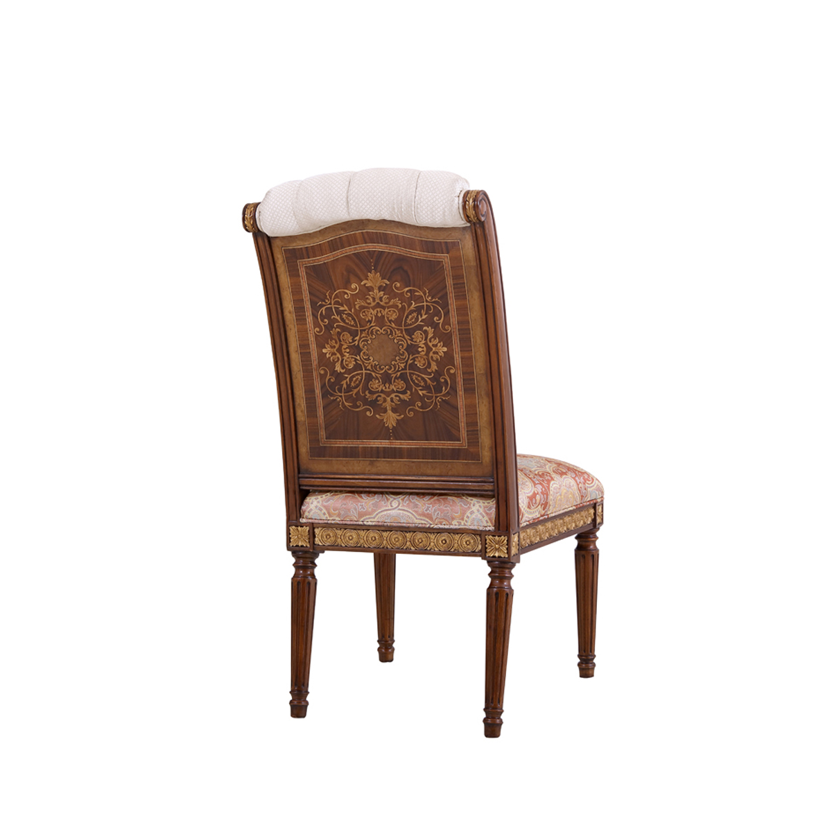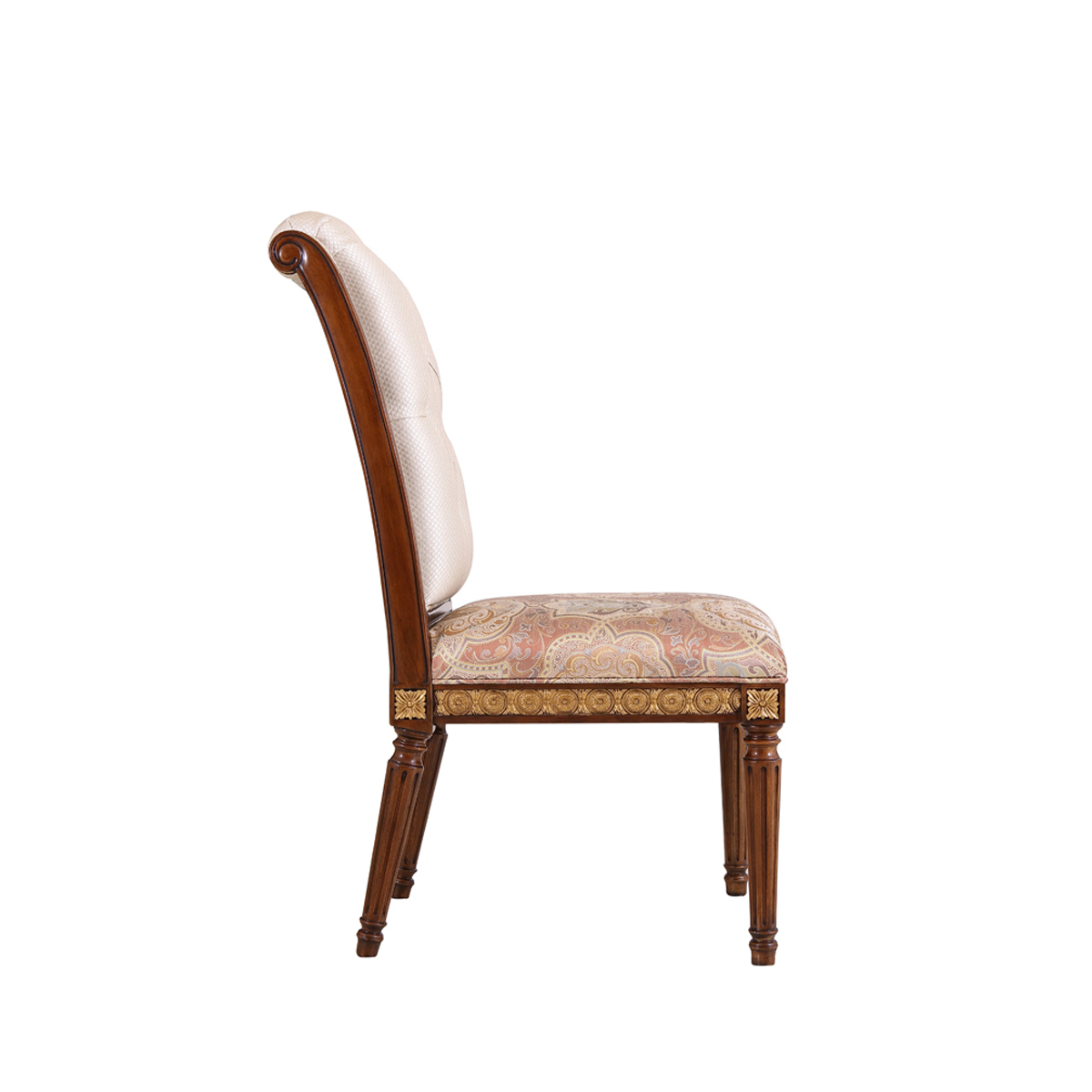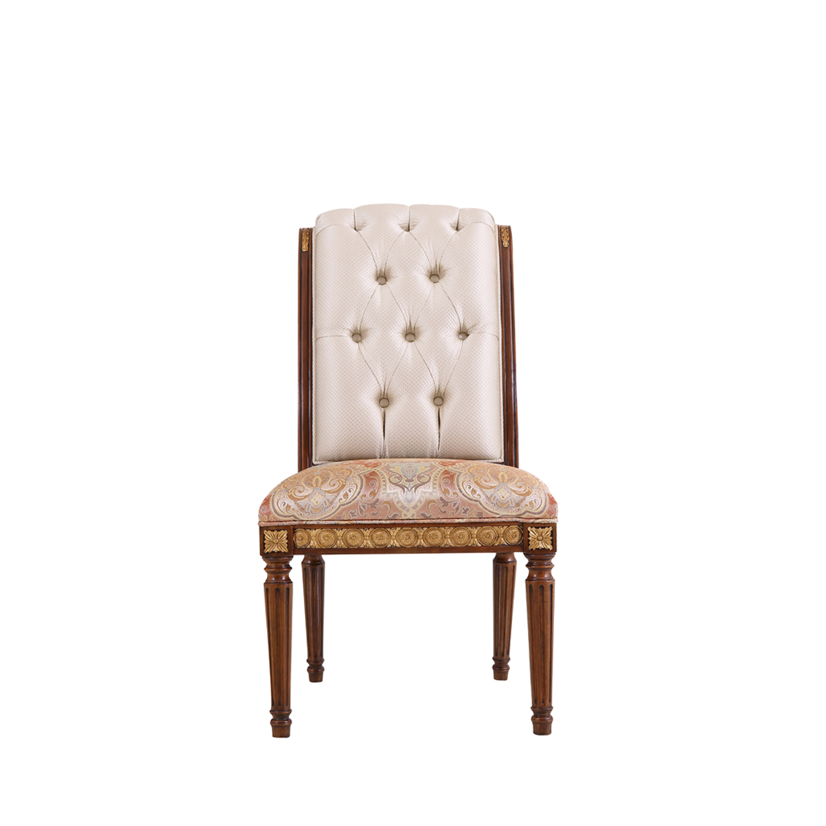 以木色為基調(diào),皇室家具御用的桃花心木彰顯傳世價值,花形刺繡椅背釋放西情東韻,結(jié)合細膩的卷葉雕刻,怒放英國貴族家居生活美學(xué)的璀璨奢華。
