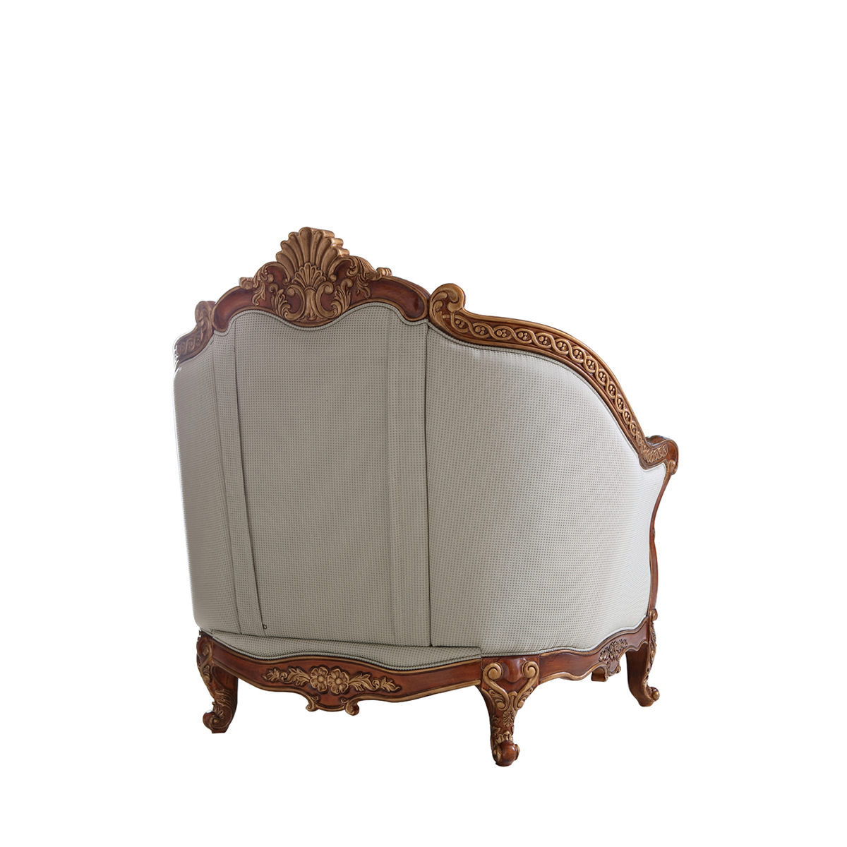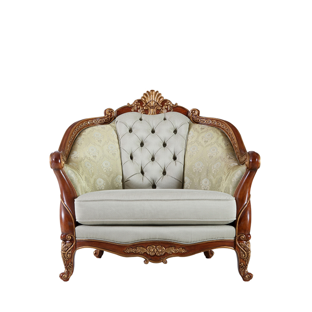 以路易時期新古典風格為設計靈感,以作為歌頌太陽王象征的太陽花連環雕刻為設計元素;配以實木花環和卷葉雕刻,青草淺綠與棕色大地色相得益彰,以及洛可可經典彎腿,將新古典的美表現得淋漓盡致,傾情演繹了法式宮廷家具的精致尊貴。