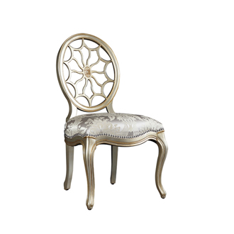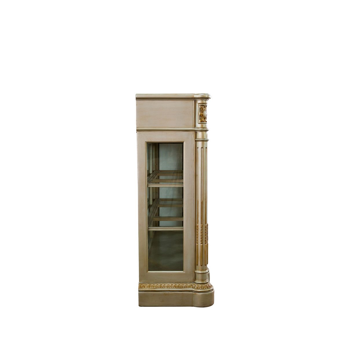 * 以法國路易十六時期的古董家具為設計基礎,采用同時期的建筑柱元素和耀眼奢華的網眼圖案、金箔貼飾,使其充滿了法式宮廷的優雅與華麗,充分詮釋了18世紀法式家具融合建筑與家具設計的藝術特點。