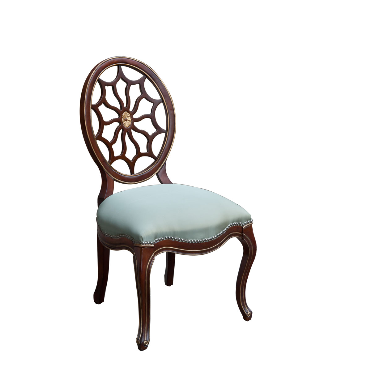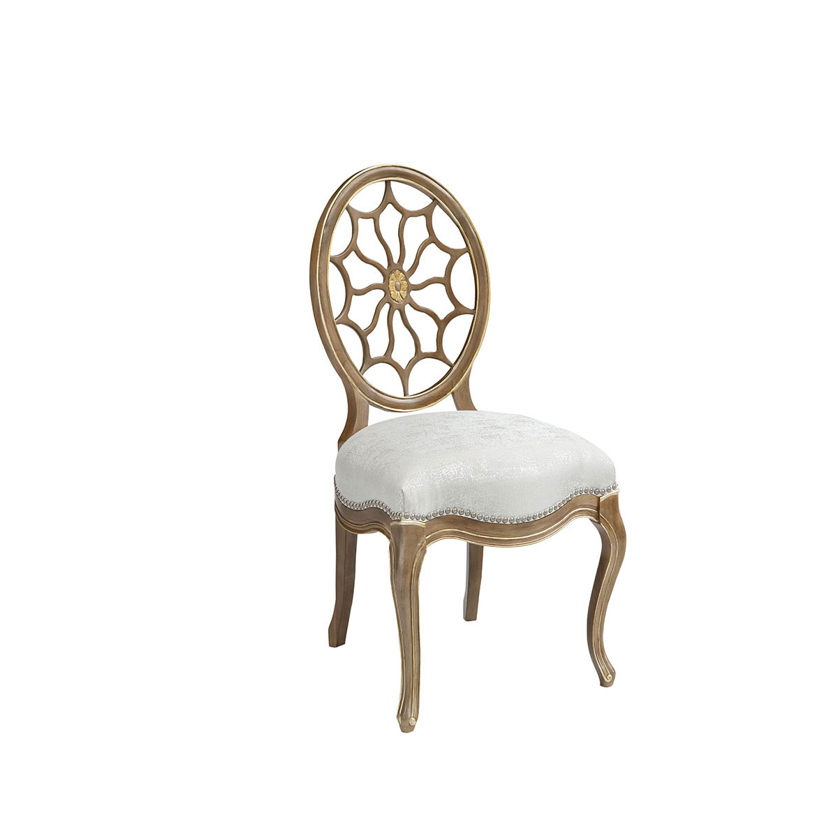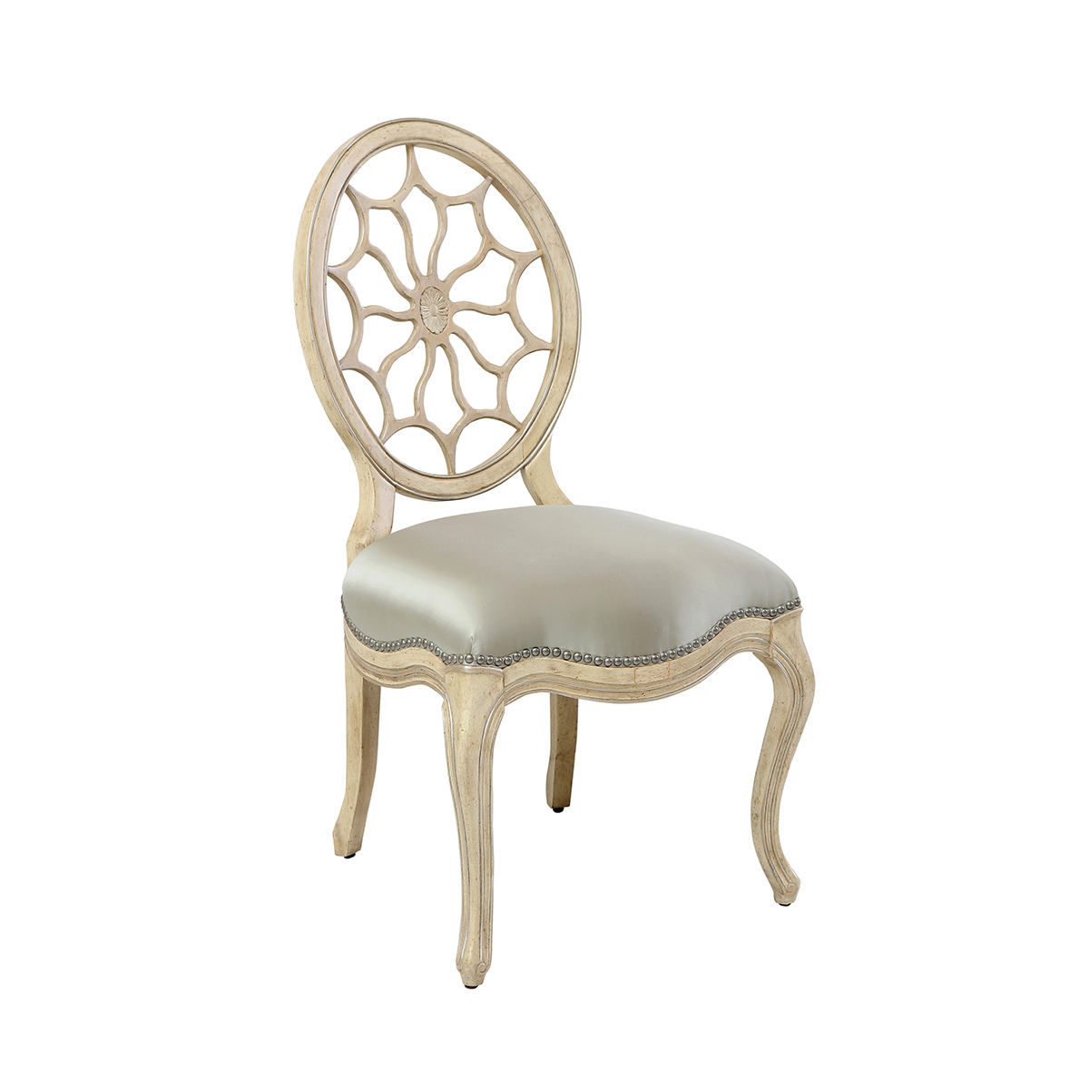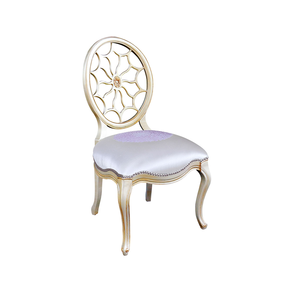 * 參考喬治三世時期的古董造型設計,使用輪子構造椅背和安妮王后腿,配以精致的手工雕刻細節和涂金工藝、浪漫的花形布藝面料和厚實柔軟的填充物,是豪華系列凡爾賽玫瑰法式單椅的特色。