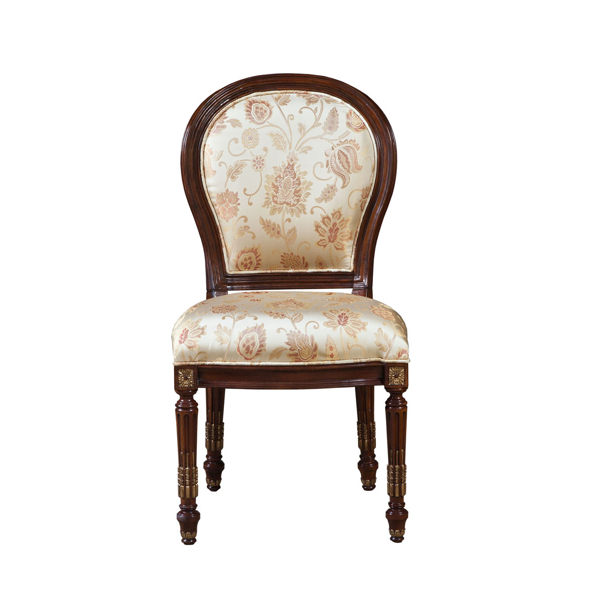 * 參考路易十六時期的古董造型設計,使用小提琴構造椅背和路易十六時期的建筑柱雕刻柱,配以精致的手工雕刻細節和涂金工藝、舒適的布藝面料和厚實柔軟的填充物,是豪華系列凡爾賽玫瑰法式單椅的特色。