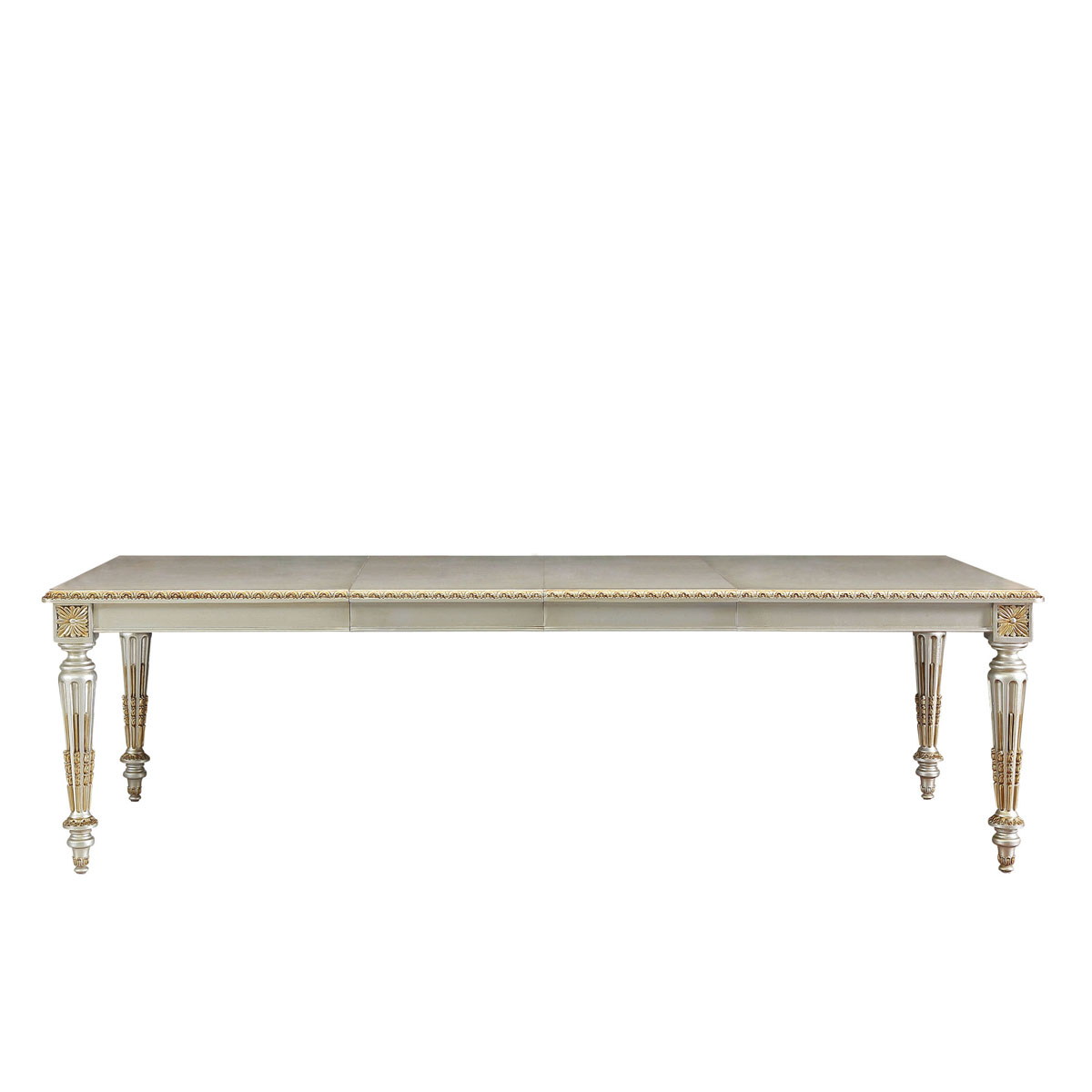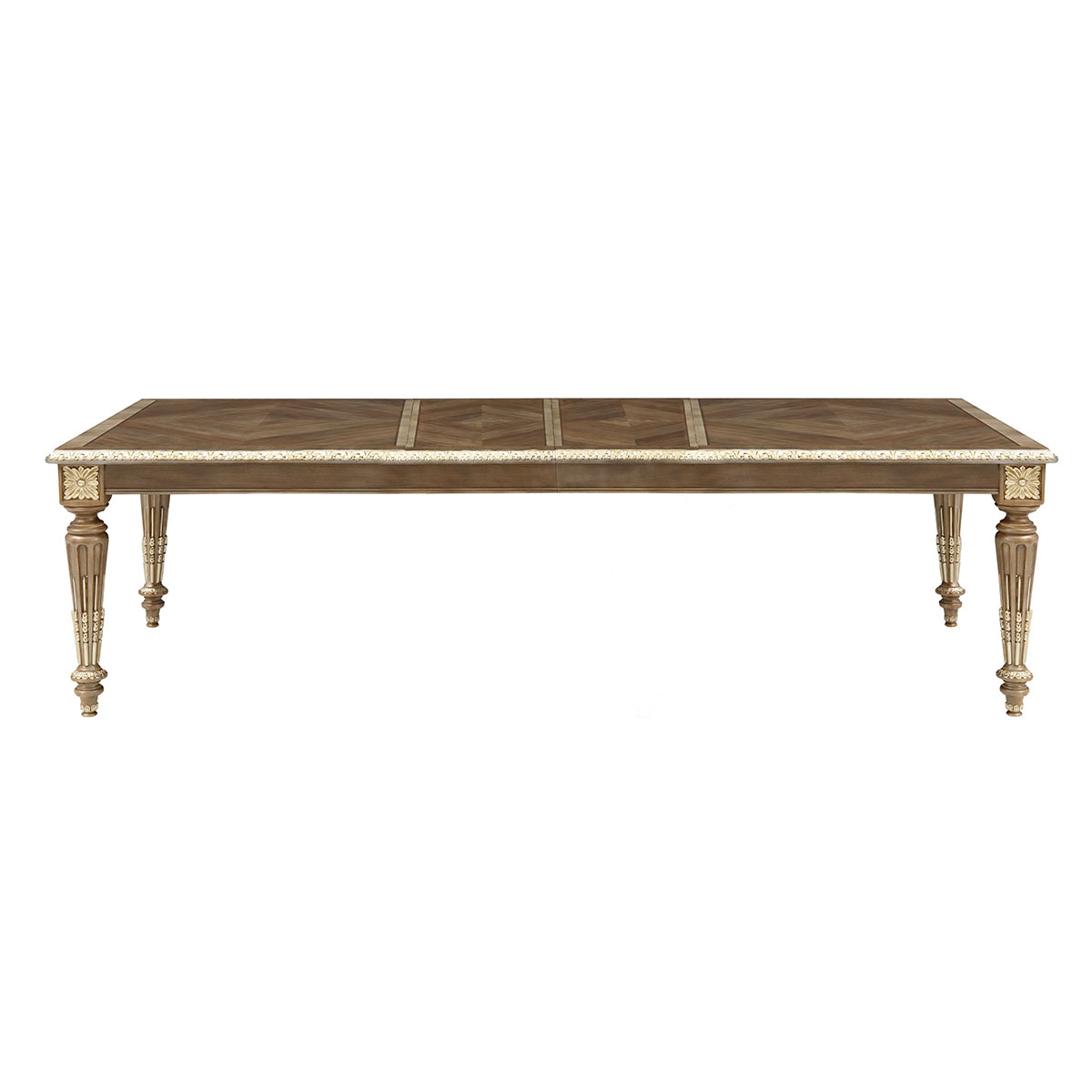 * 為表現法國路易時期的莊嚴和浪漫,以法國凡爾賽宮為設計元素。使用歌頌路易十四時期的太陽花雕刻,顯示其王權穩固地位的錐形腿腳設計;配以鉆石圖案木皮貼面、可調節的伸板設計和貼金工藝,完美演繹了法式宮廷家具的奢華尊貴。