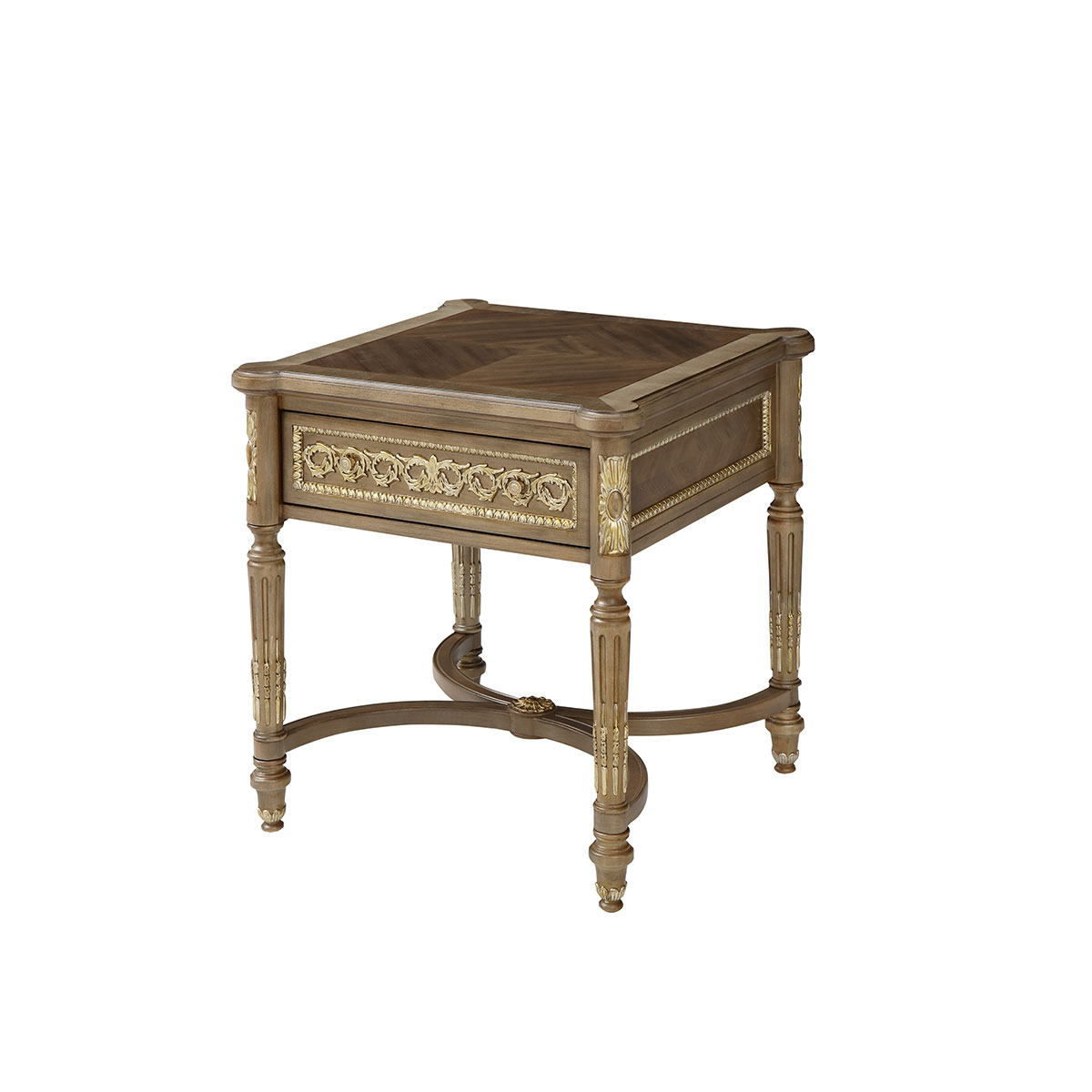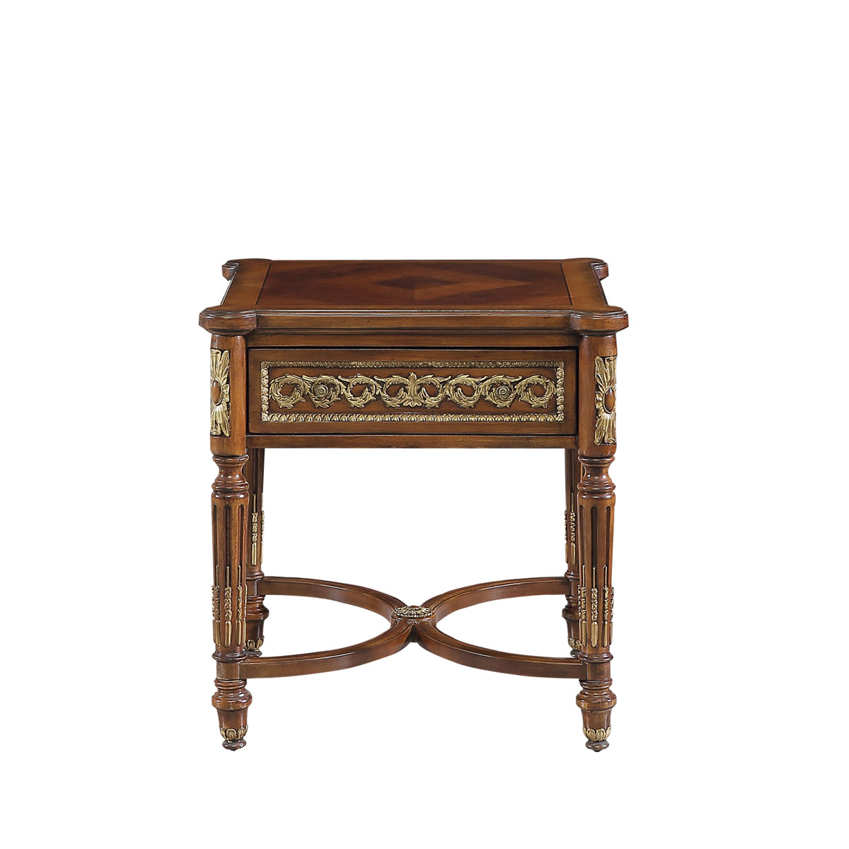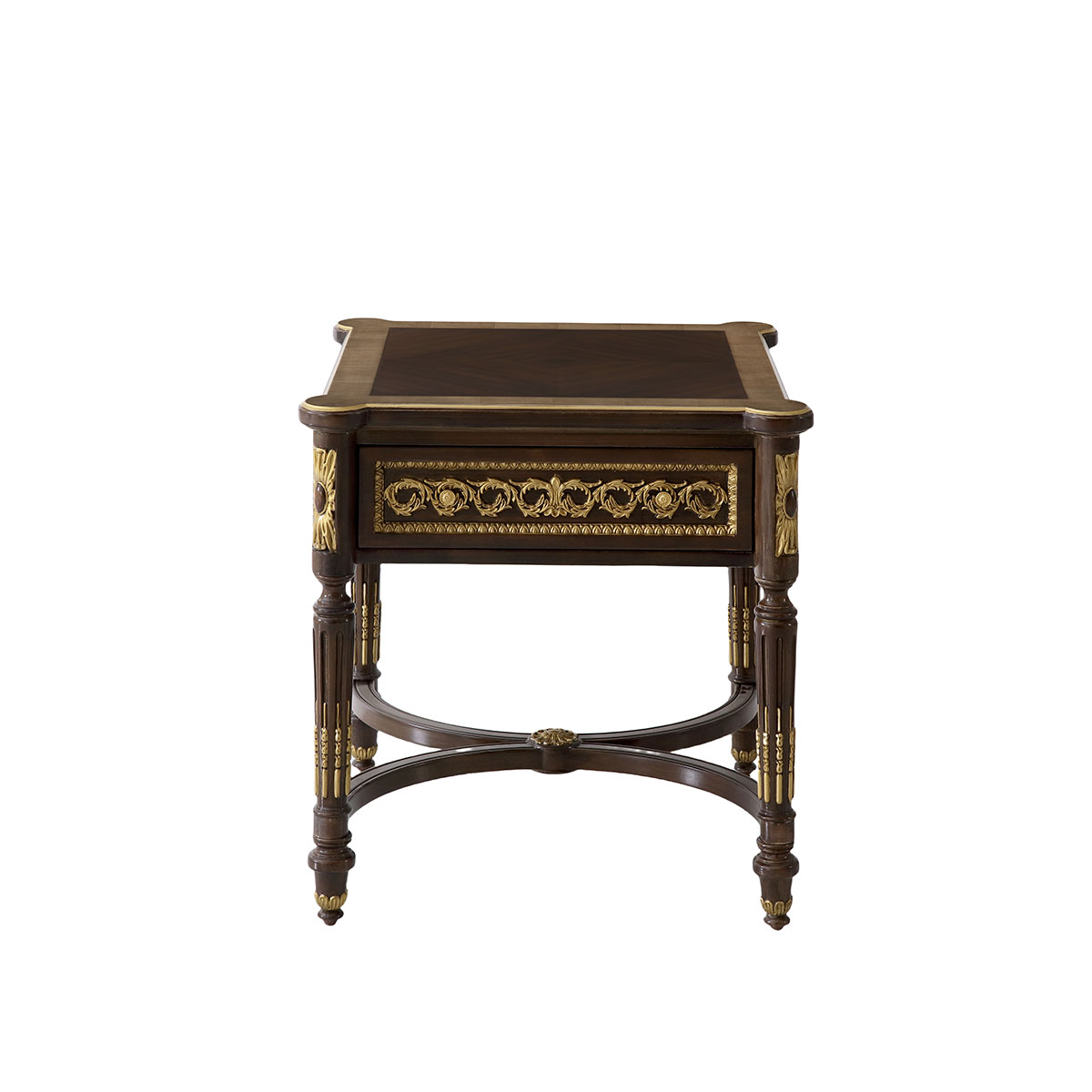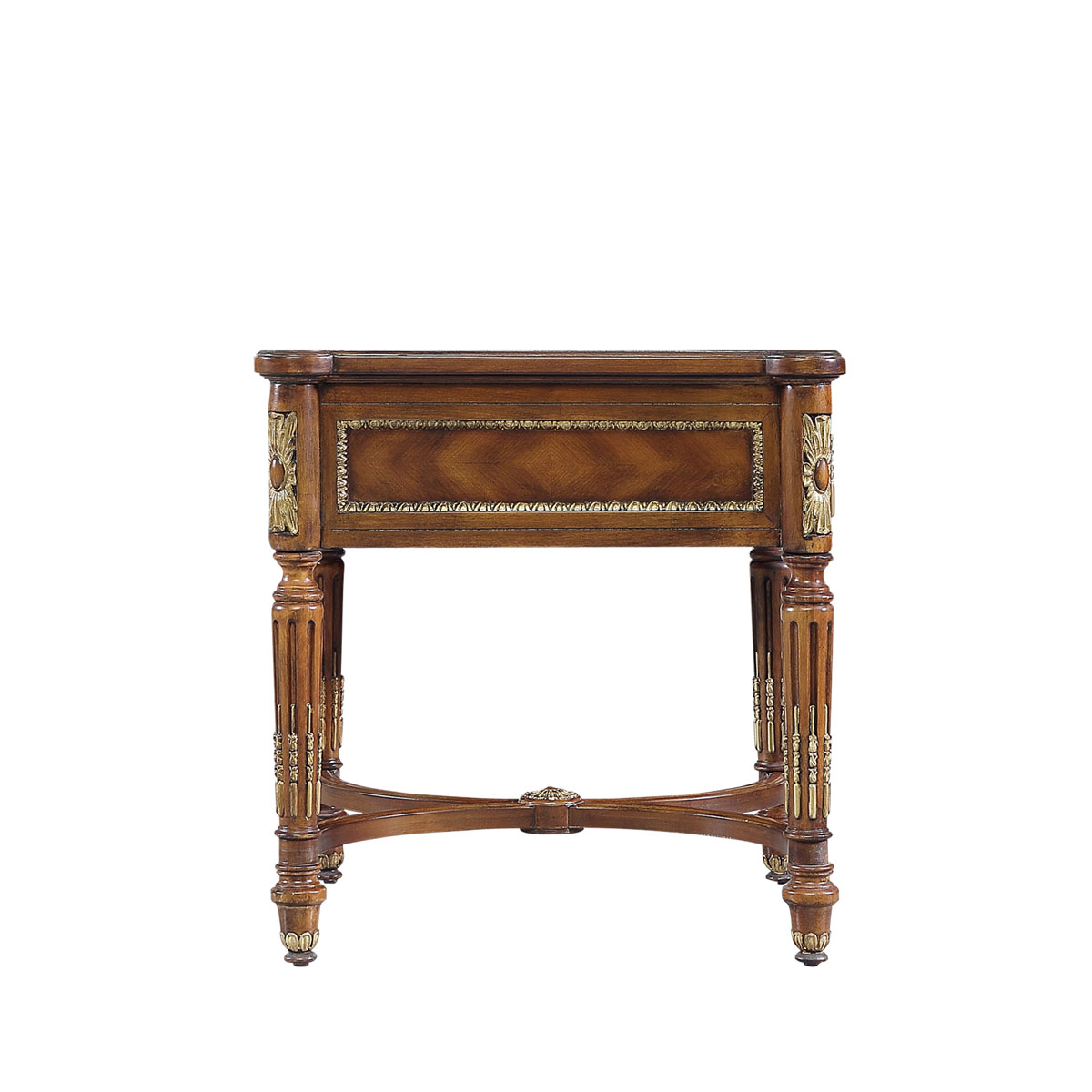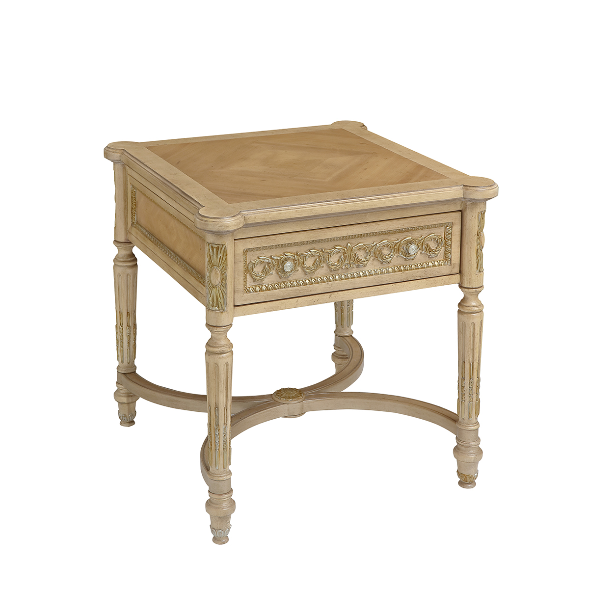 * 為表現(xiàn)法國路易時期的莊嚴和浪漫,以法國凡爾賽宮為設計元素。使用歌頌路易十四時期的太陽花連環(huán)雕刻,顯示其王權穩(wěn)固地位的錐形腿腳設計;配以哥特式建筑中的大圓窗骨架設計、建筑柱雕刻與絢麗的貼金工藝,完美演繹了法式宮廷家具的奢華尊貴。