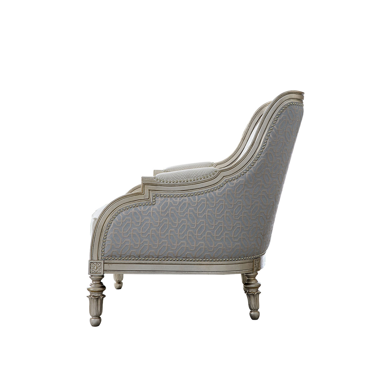 復古而有時尚感的香檳金涂裝,喚醒輕奢時尚;井然有序的雕刻,栩栩如生的花紋裝飾,使它不論從任何角度欣賞,都愈加美不勝收。含苞待放的鈴蘭花雕刻椅腳增添知性的魅力,綻放氣質光彩。
