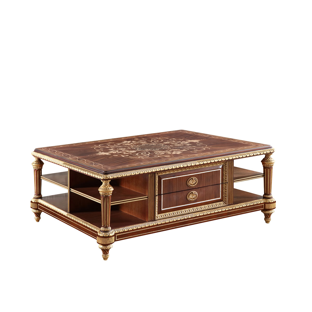 * 帶槽紋的錐形腿象征權(quán)力的堅不可摧,英國皇室家具御用的桃花心木飾以珍稀木皮彰顯傳世價值,綺麗華美的花朵雕刻與拼花圖案,則寄托了王室貴族對古典藝術(shù)的鐘愛。