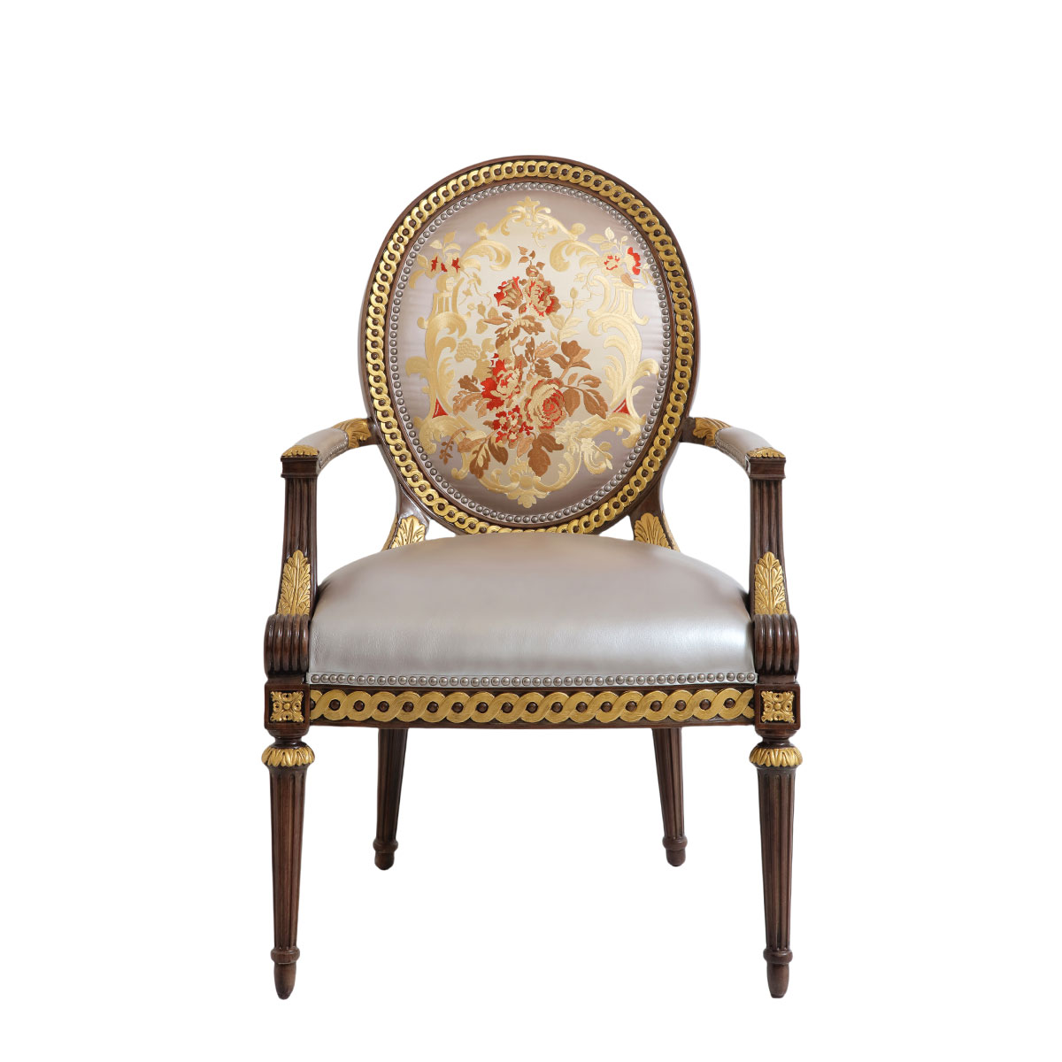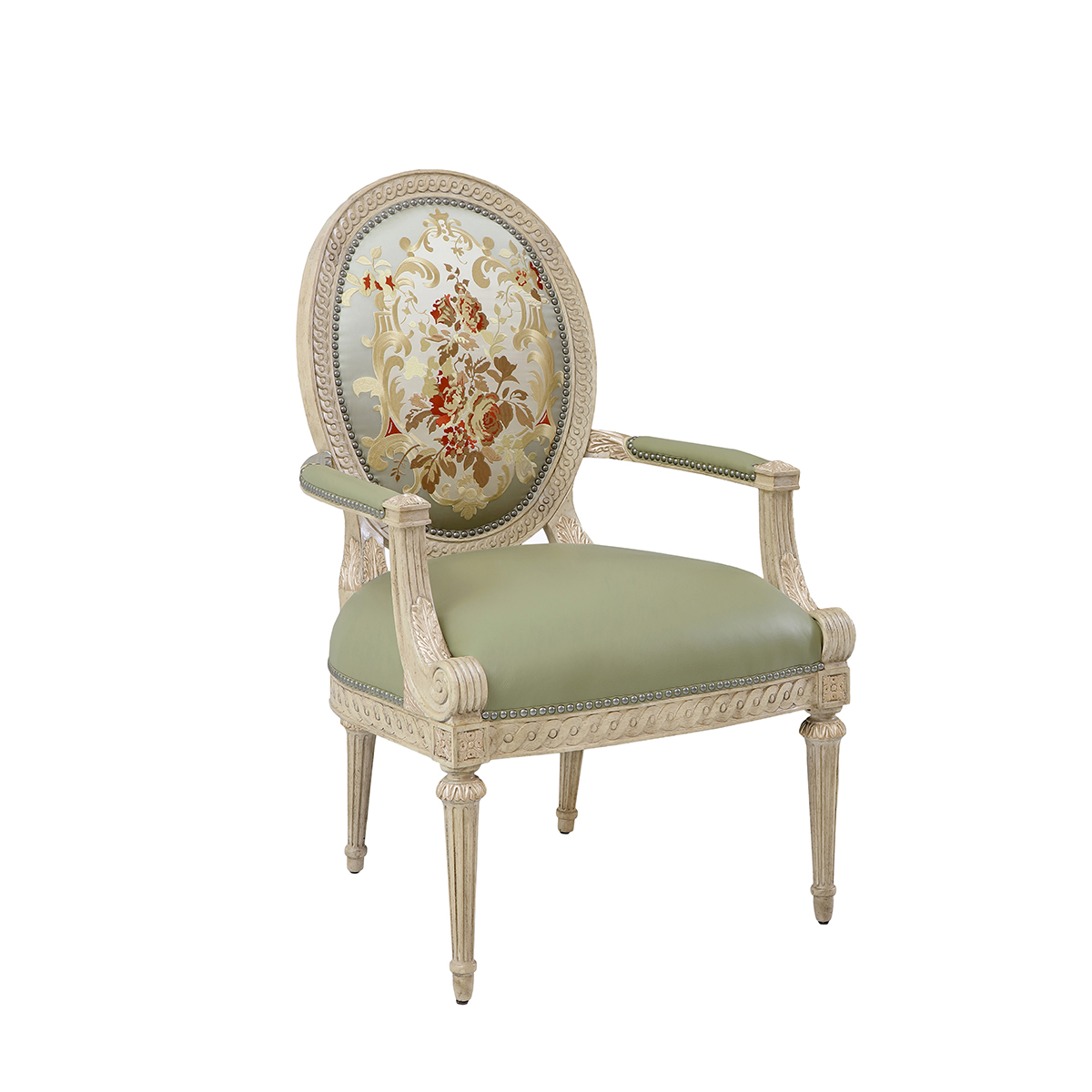 * 精細的手工雕刻配上仿金箔工藝結合十八道油漆工藝 * 坐墊和靠背包有豐厚的填充物; * 可拆裝的軟包座墊, * 提供多種面料可供選擇