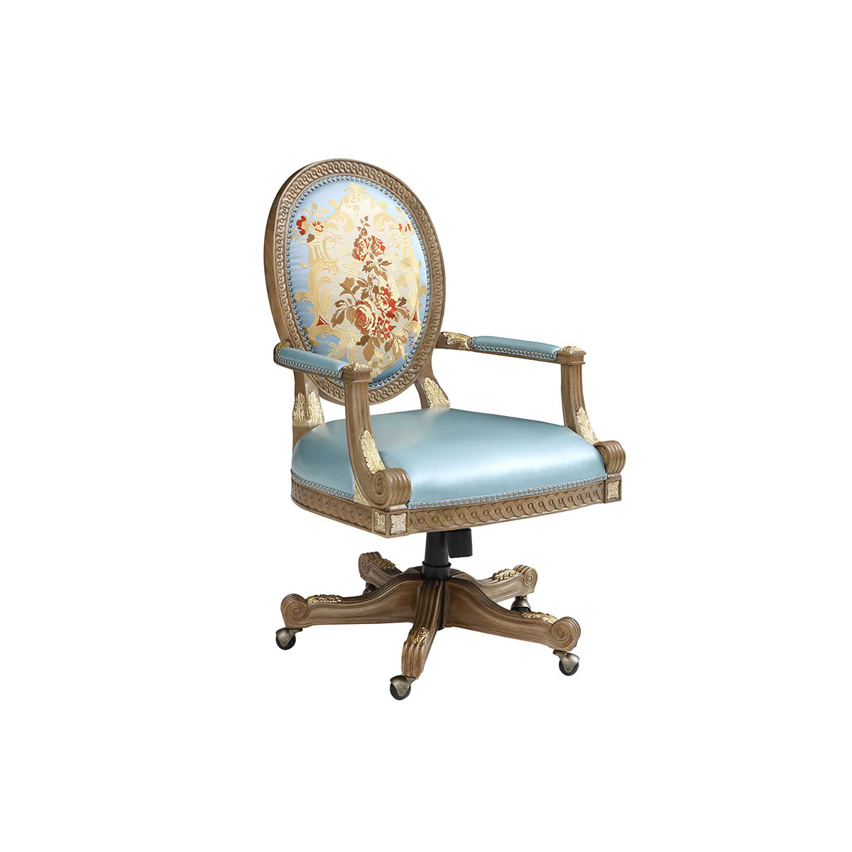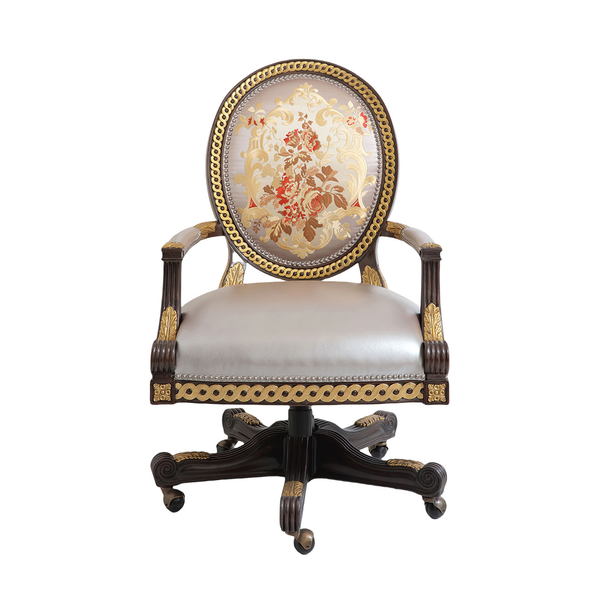 參考18世紀法國路易十六時期涂金扶手椅古董設計,并結合同時期的圓面背板設計。配上精致的連續雕刻和貼金鉑工藝、錐形腳設計、觸感舒適的布藝和包有豐厚的填充物坐墊和靠背。