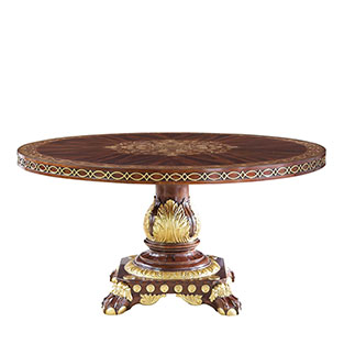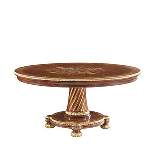* 為表現(xiàn)英國皇室和歐洲各國互相的影響,以英國溫莎堡中的法式元素為設(shè)計意念。法式彎腿與 Acanthus(阿坎瑟斯)卷葉雕刻,結(jié)合貼金工藝和法式 Camelback(駱駝背)線條,流露出優(yōu)雅的法式浪漫情調(diào),配上觸感柔軟的布藝和包有豐厚填充物的坐墊和靠背,充分彰顯了英式家具兼容并蓄的藝術(shù)特色。