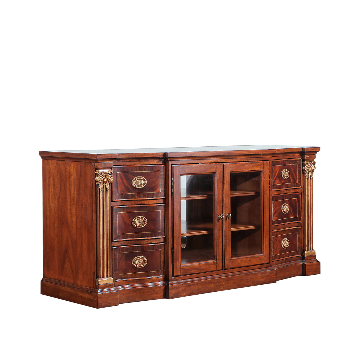 * 為表現英國皇室的華麗和莊嚴,以英國溫莎堡為設計元素。使用優雅的 Ionic Order(愛奧尼克式羅馬柱)雕刻,配上耀眼的貼金箔與精美的木皮貼面工藝,完美演繹了英式宮廷家具的奢華尊貴,可謂是極具典藏價值的傳世之作。