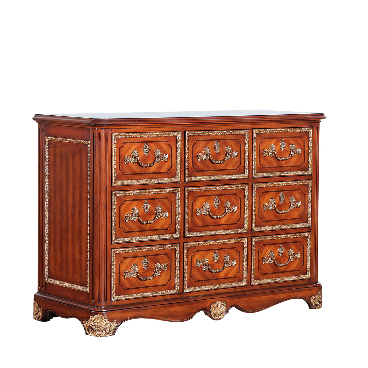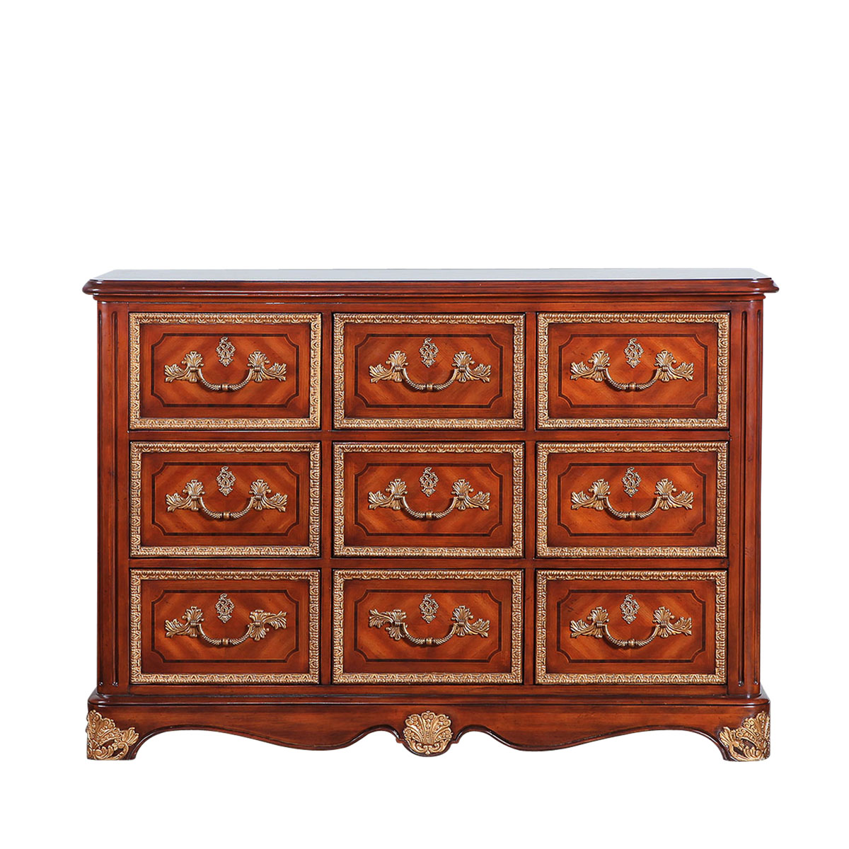 * 仿金箔工藝配上精細的雕刻工藝 * 九個儲物抽斗,采用硬木實木滑軌 * 腳底部裝有可調(diào)腳釘