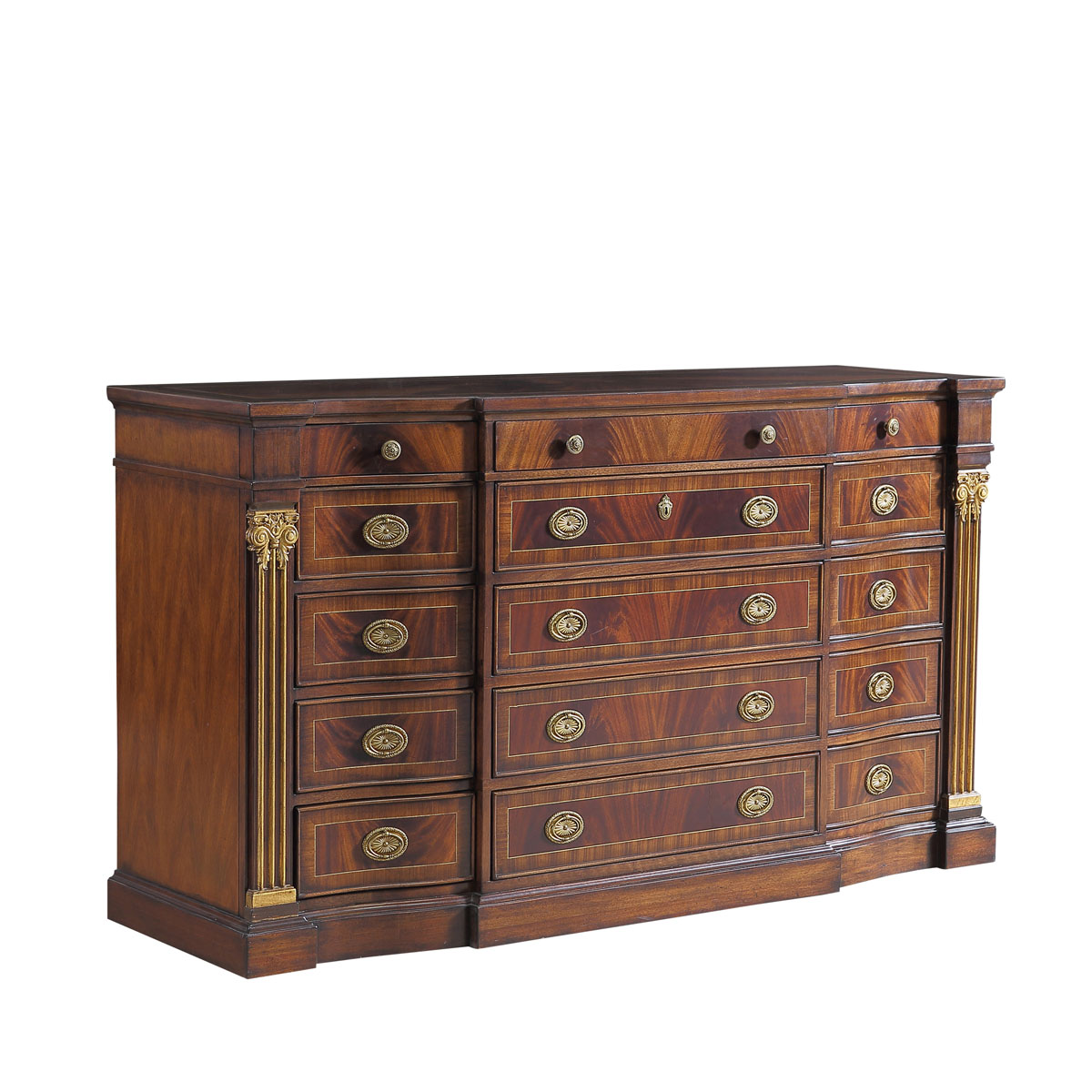 * 為表現英國皇室的華麗和莊嚴,以英國溫莎堡為設計元素。使用優雅的 Ionic Order(愛奧尼克式羅馬柱)雕刻,配上耀眼的貼金箔工藝與仿鎖孔設計,完美演繹了英式宮廷家具的奢華尊貴,可謂是極具典藏價值的傳世之作。