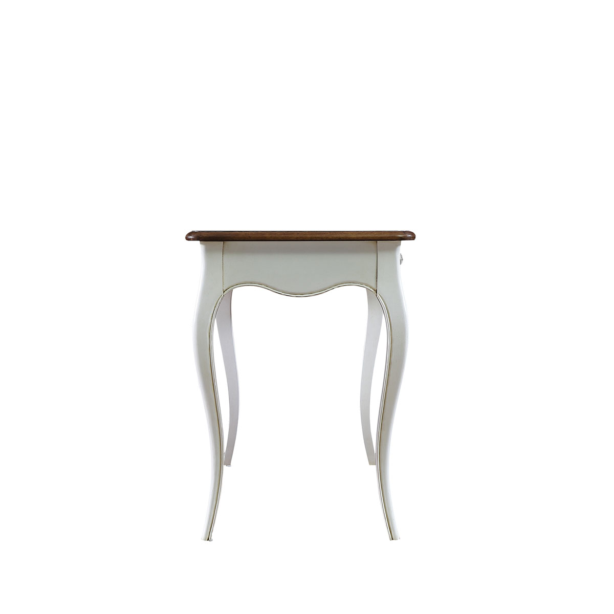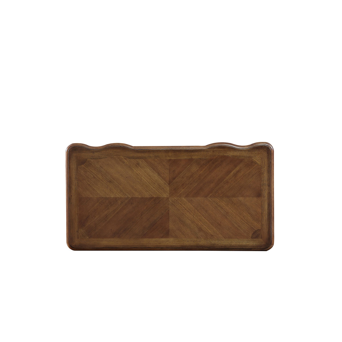 * 在法式仿古白油漆上,手繪上山清水秀的中國山水畫,讓一切都回歸自然的簡潔淡雅;抽屜的線條型設(shè)計與優(yōu)雅的法式彎腳完美契合, 再配以猶如晨陽的實木簿片拼貼工藝, 盡顯普羅旺斯的休閑愜意。
