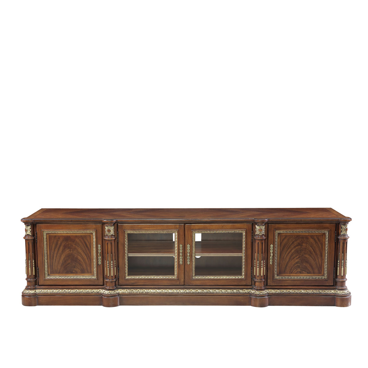*為表現法國路易時期的莊嚴和浪漫,以法國凡爾賽宮為設計元素。使用歌頌路易十四時期的太陽花雕刻,優雅的黑金色手繪山水畫與鉆石圖案實木薄片拼貼工藝,完美演繹了法式宮廷家具的奢華尊貴。