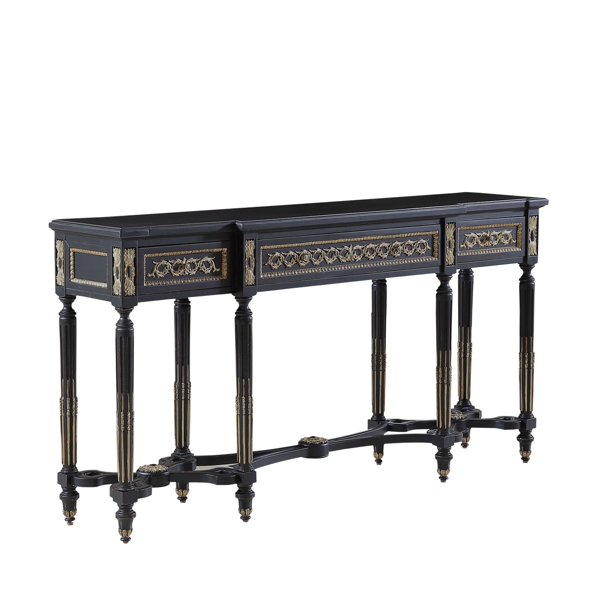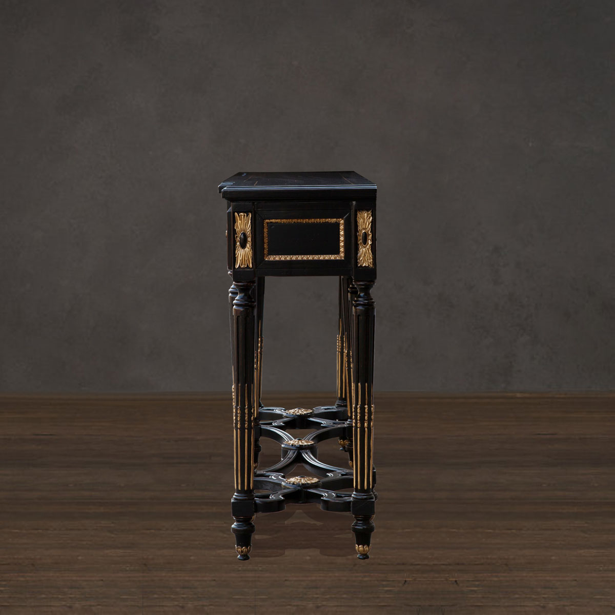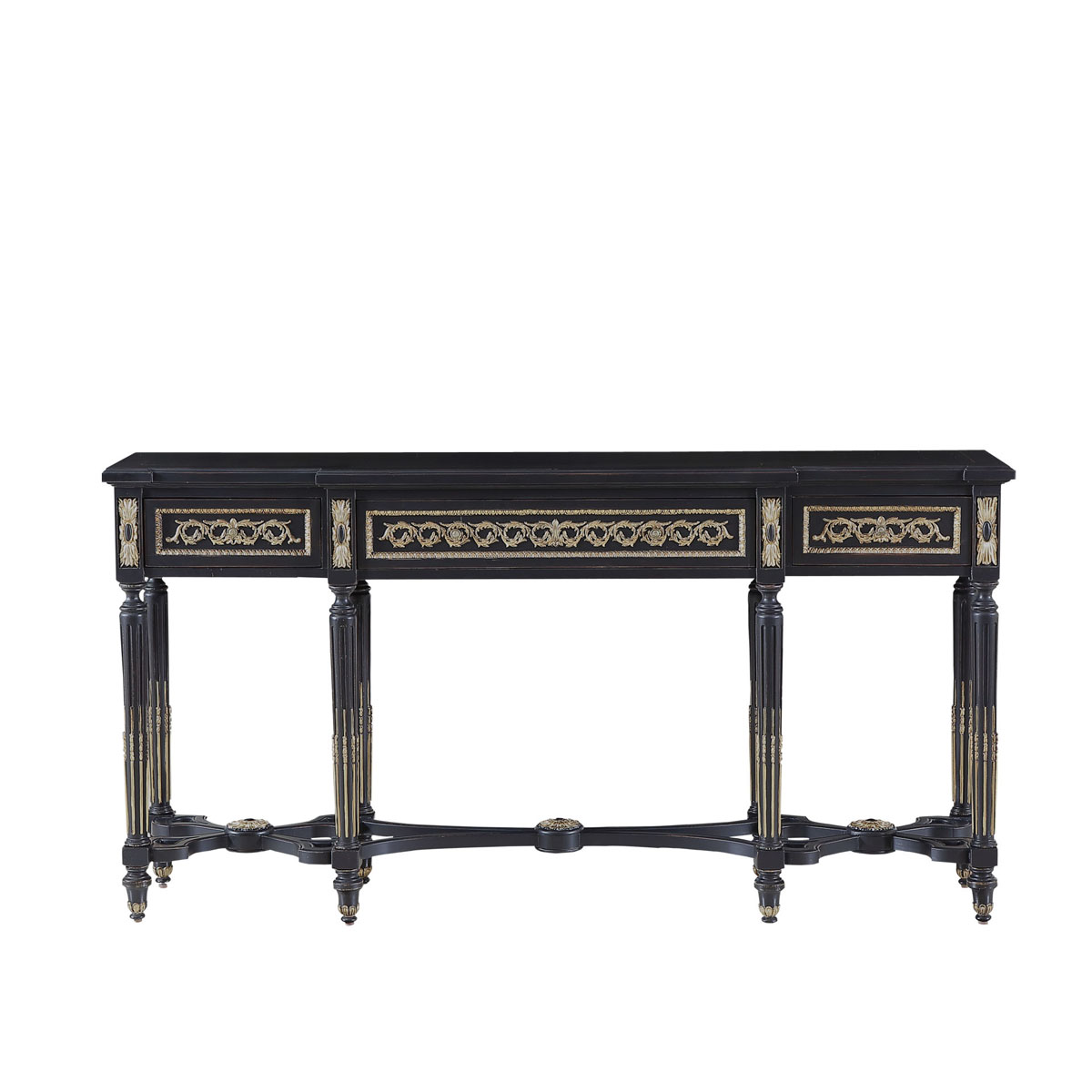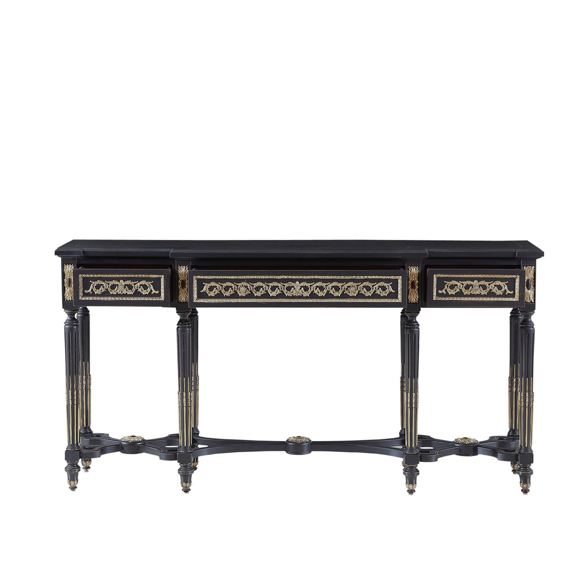 * 為表現(xiàn)法國路易時(shí)期的莊嚴(yán)和浪漫,以法國凡爾賽宮為設(shè)計(jì)元素。使用歌頌路易十四時(shí)期的太陽花連環(huán)雕刻,顯示其王權(quán)穩(wěn)固地位的錐形腿腳設(shè)計(jì);配以哥特式建筑中的大圓窗骨架設(shè)計(jì)、精美的木皮貼面與絢麗的貼金工藝,完美演繹了法式宮廷家具的奢華尊貴。