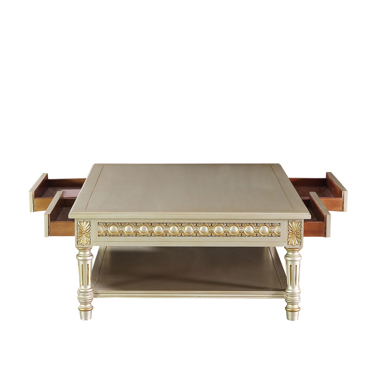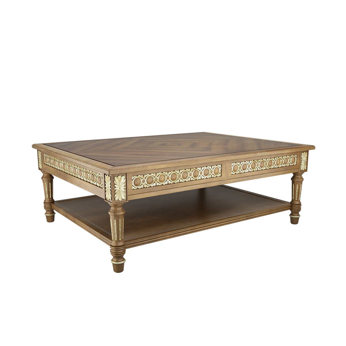 * 為表現(xiàn)法國路易時(shí)期的莊嚴(yán)和浪漫,以法國凡爾賽宮為設(shè)計(jì)元素。使用歌頌路易十四時(shí)期的太陽花連環(huán)雕刻,顯示其王權(quán)穩(wěn)固地位的錐形腿腳設(shè)計(jì);配以實(shí)用性層板設(shè)計(jì)和獨(dú)特的香檳金色,完美演繹了法式宮廷家具的奢華尊貴。