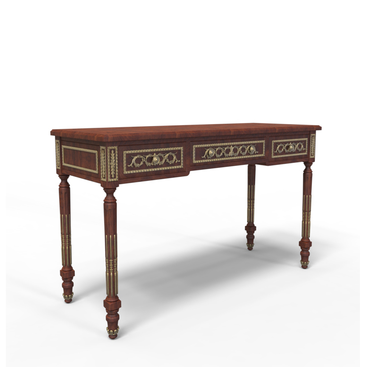 * 為表現法國路易時期的莊嚴和浪漫,以法國凡爾賽宮為設計元素。使用歌頌路易十四時期的太陽花雕刻;路易十六時期的建筑柱雕刻;顯示其王權穩固地位的錐形腿腳設計、古銅色的球形把手和貼金工藝,完美演繹了法式宮廷家具的奢華尊貴。