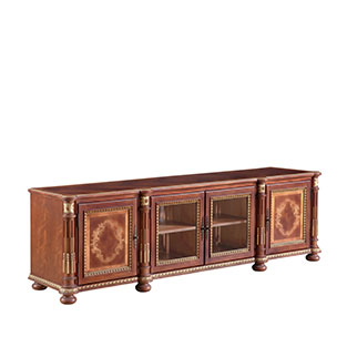 * 結合代表“太陽王” Louis XIV (路易十四)的圖騰、Louis XV (路易十五)時期洛可可風格雕刻彎腿與Louis XVI (路易十六)時期新古典風格實木簿片鑲嵌圖騰,把法國凡爾賽宮中的經典呈現,表達法國宮廷的華麗與傳承。