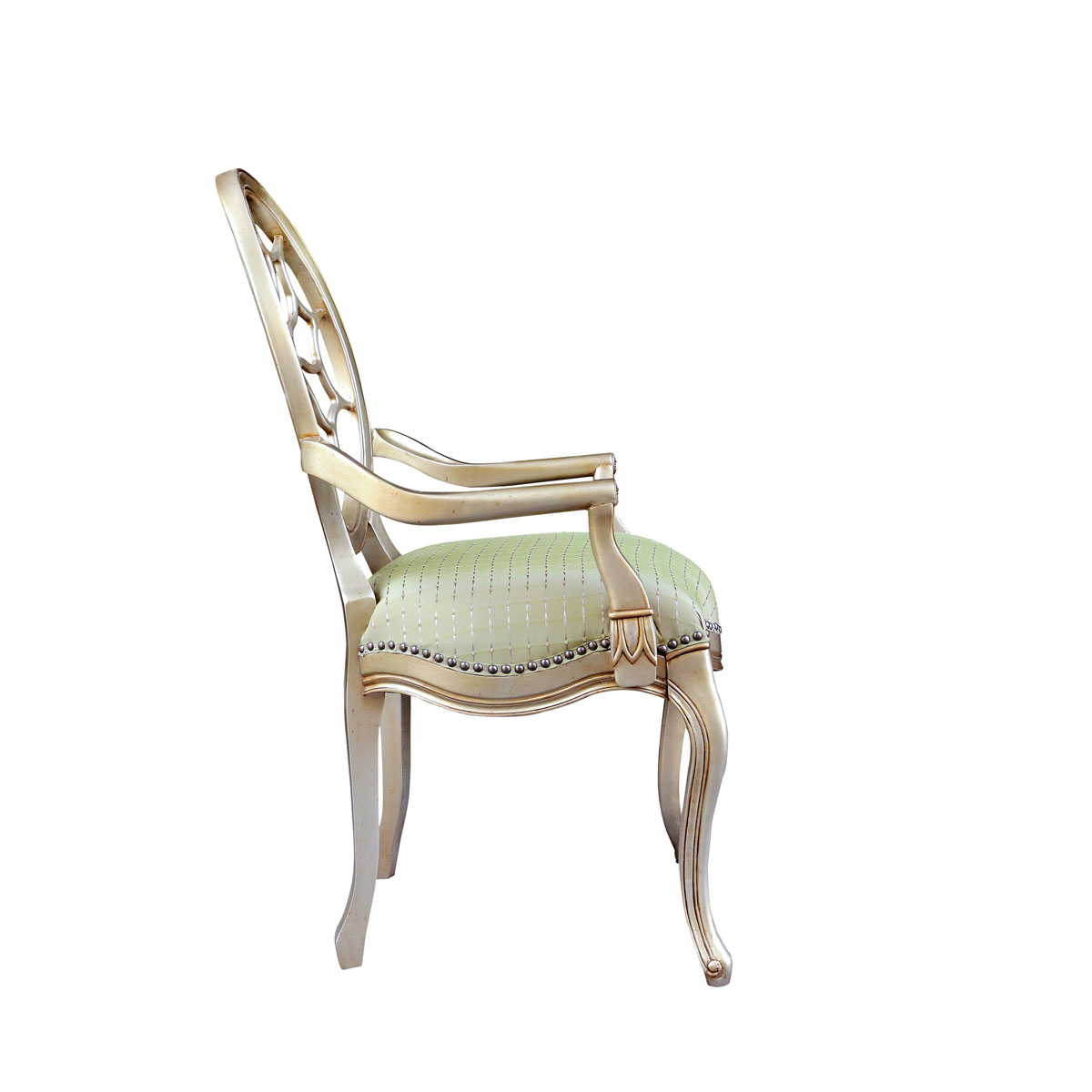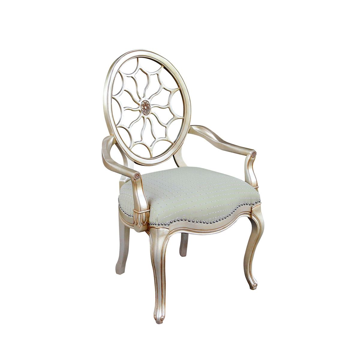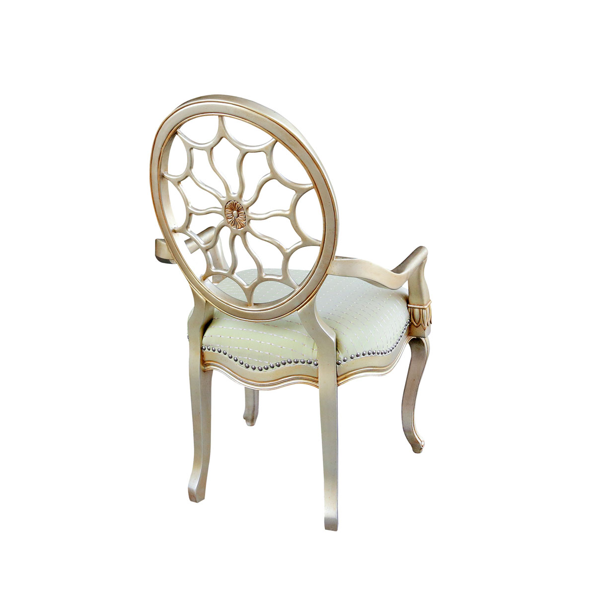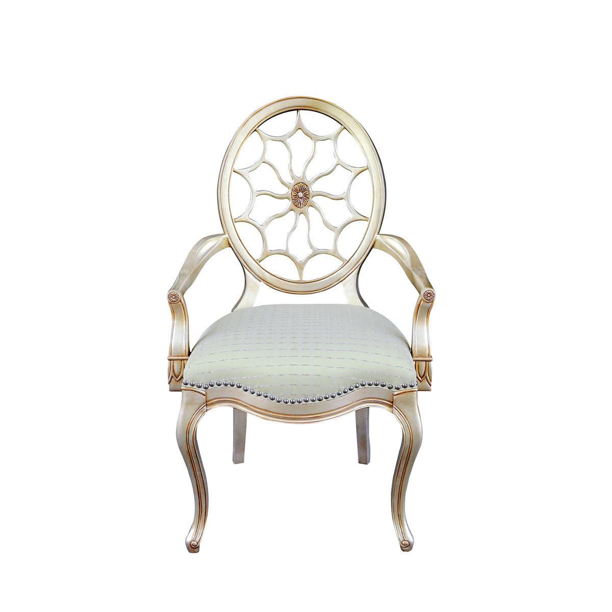 * 參考喬治三世時(shí)期的古董造型設(shè)計(jì),使用輪子構(gòu)造椅背和安妮王后腿,配以精致的手工雕刻細(xì)節(jié)和涂金工藝、布藝面料和厚實(shí)柔軟的填充物,是豪華系列凡爾賽玫瑰法式扶手椅的特色。