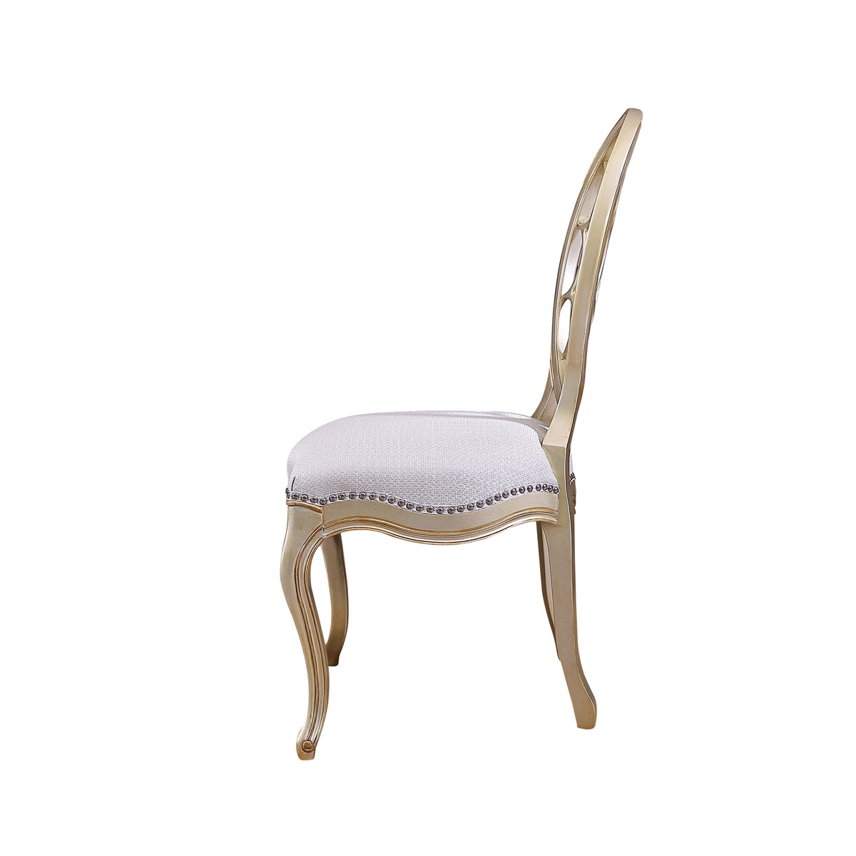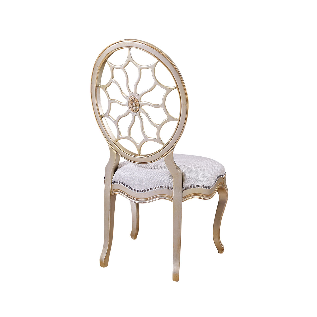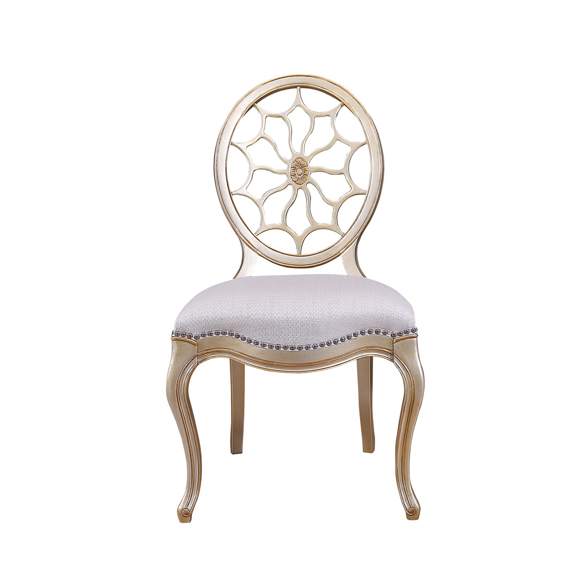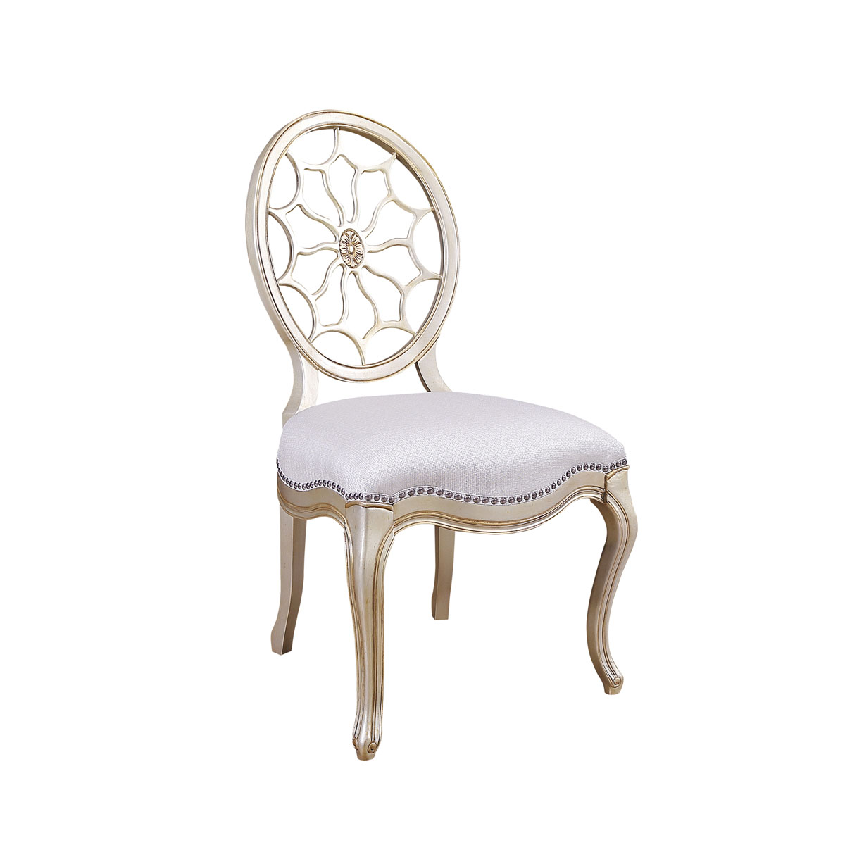 * 參考喬治三世時期的古董造型設(shè)計,使用輪子構(gòu)造椅背和安妮王后腿,配以精致的手工雕刻細節(jié)和涂金工藝、布藝面料和厚實柔軟的填充物,是豪華系列凡爾賽玫瑰法式單椅的特色。